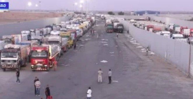 انطلقت اليوم الأحد، شاحنات قافلة المساعدات الإنسانية المحملة بالمواد الغذائية والوقود للقطاع من معبر رفح البري بالجانب المصري إلى منفذ كرم أبو سالم.